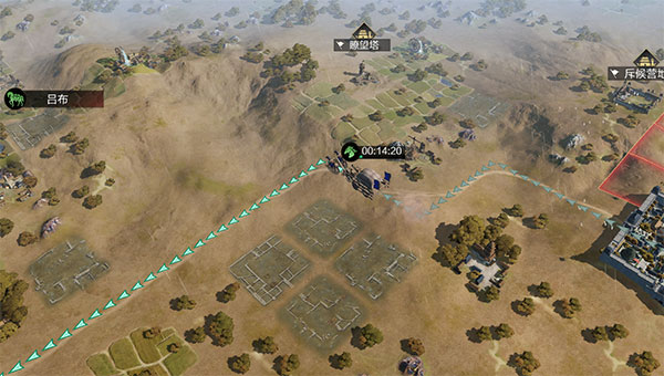 配置部队时需要注意武将的攻击距离是否能有效攻击敌方,否则会大大削弱部队的实力。(攻击距离:武将的普通攻击只能对攻击距离内的目标有效。如敌我双方均有3名武将参战,我方前锋与敌方前锋的距离为1,我方中军与敌方前锋的距离为2,与敌方大营武将的攻击距离则为4)