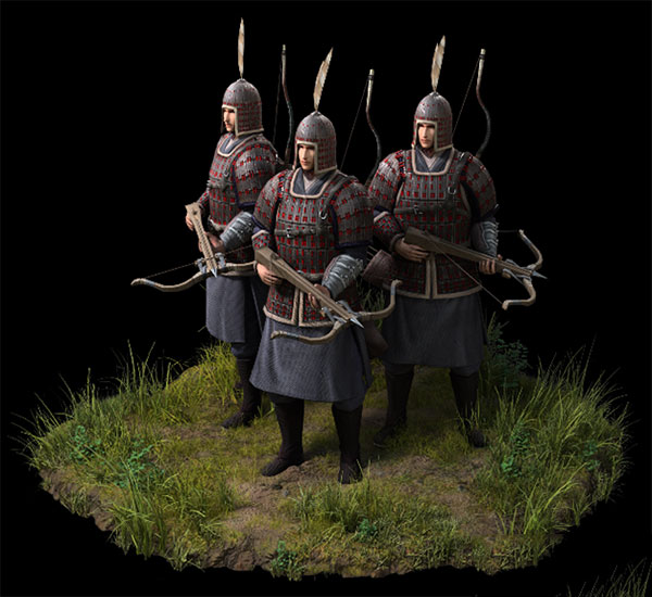 使用精工制造、可连续射击的弩弓的士兵