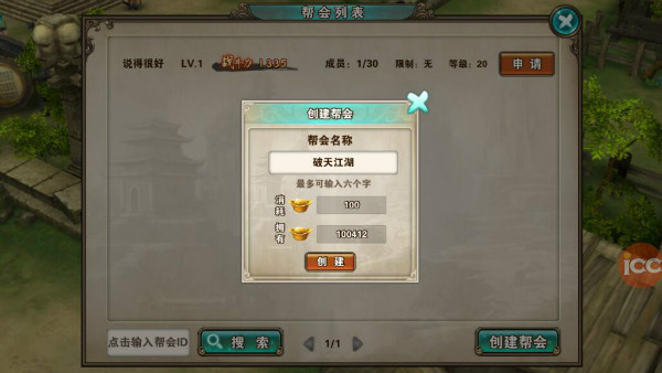 少侠在江湖行走至一定级时,左下角开启“帮会”功能