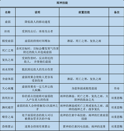 水系核心虚弱,后续还有虚弱增伤以及传奇技能(虚弱概率疯狂),其次点个减伤,其他技能吗,没得点就点,冰冻据说有bug,没试过。