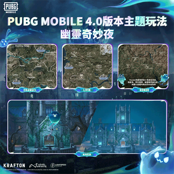 注意:Erangel和Livik地图中将会推出所有内容,Rondo地图仅推出主题玩法中的「小鬼头幽灵、捣蛋鬼幽灵、飞天扫把」