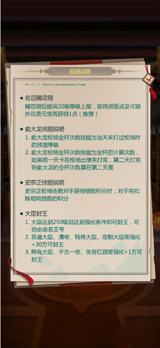 1、赐花后玩家最多只能拥有两个配点,一个是系统赠送的,一个是自己购买的,两个配点比较稀少,玩家要注意不能加错配点,配点前可以先熟悉此大臣的特长,再进行配点,其次玩家可以看看自己比较确实哪方面的大臣,就加哪方面。