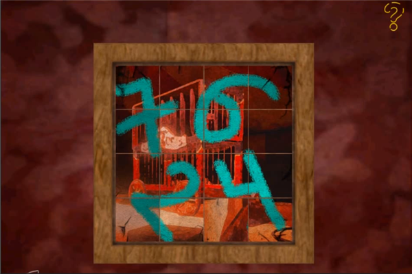 6、客厅里的气球会再次出来,点击气球再次进入梦想世界,刚刚打不来的门,现在已经可以出来了,下来找到一个六角扳手的道具,上楼拧掉四个螺丝,墙上挂着的画,点击会自动变换方向,数字会随机刷新。