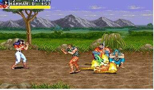 6、关口BOSS变白痴法!!自己独创的。首先想办法让他两双的大刀全部落在屏幕场景的中线上(叠放在一起更好),而BOSS已经被揣出屏幕,马上将身位移到屏幕最靠外的线路上,会发现BOSS丧失一切技能,只会傻子似的从屏幕缓缓的走出来,不会跳,也不会碎步移了,哈哈,你就折跑回去把他再度踢出屏幕,然后他再白痴一样慢慢的又走回屏幕,然后再踢…反复致死!!但是注意一定不要在上下移了,一旦离开这跳横线路,BOSS马上又活蹦乱跳起来。