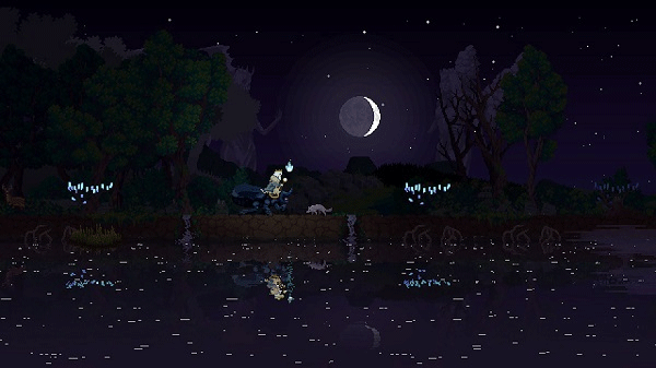1、虽然画面像素复古,但画面结构却一点不简单,良好的光影处理,远处巍峨的高山,近处茂密的树林,水中甚至还有倒映,细节处理非常到位;
