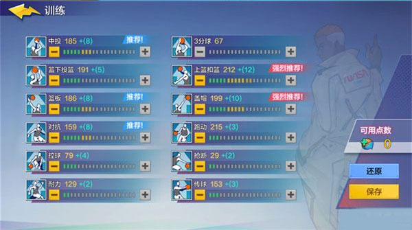 对于一名大前锋来说,进攻防守时大都靠近篮下,上篮扣篮是强烈推荐项目,盖帽则是防守端的一大杀招,擅长使出背身跳投的玩家可以提升中投属性,而侧重防守、抢板的玩家则要着重提升篮板和对抗属性。跑动属性有助于大前锋与后卫球员作出挡拆、空接配合,我们可以选择适量叠加。