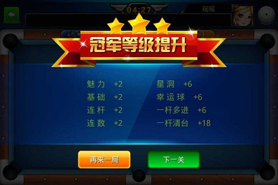5、冠军之路——挑战世界腕级台球巨星,解谜各类花式台球,从草根轻松成长为台球明星。