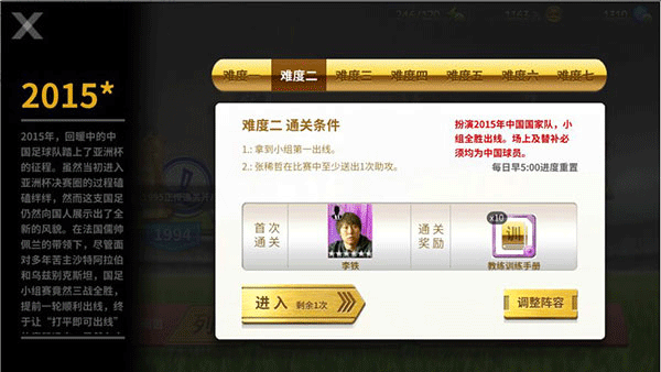 玩家将以时间轴的形式回顾中国足球历史,回味到中国足球史上发生的众多经典事件和曾经的激情瞬间。