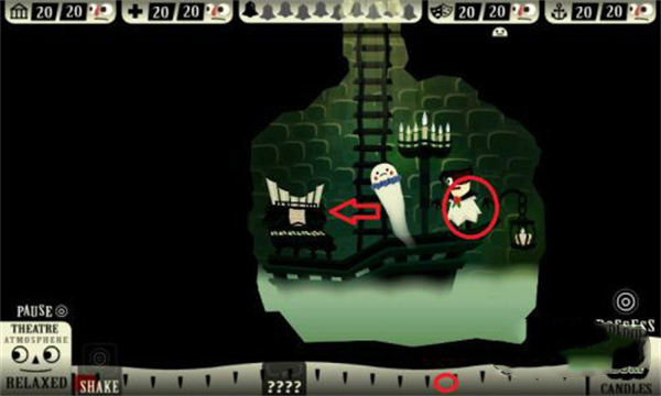 具体做法:幽灵附体箭头指向的黑色瓶子,然后用圆圈出的按钮,不好意思,英文不好,不认识,然后瓶子爆炸,厨师带走。