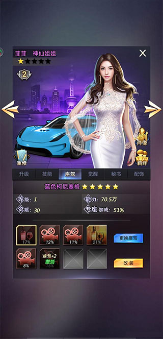 人才到手之后我们要对其进行培养,人才升级,搭配秘书,技能的升级,座驾以及觉醒等等,玩法让你一时之间也记不住,很有可能日常会忘记某些玩法,人才搭配了座驾之后,座驾还可以再次进行提升,里面有升星升级和改装,改装就是我们俗称的洗属性,洗出了高级属性就留着,当改装到一定属性后,就可以和人才进行匹配,得出更高的牵绊属性