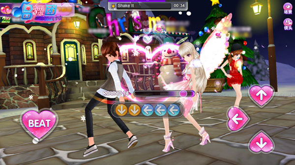 4、约会模式的操作和经典模式比较相似。都是输入相应的方向键 打击Beat键完成舞步,只不过约会模式在游戏过程中分二轮,其中每轮都会有跳舞、表白、配对、约会、四个阶段。