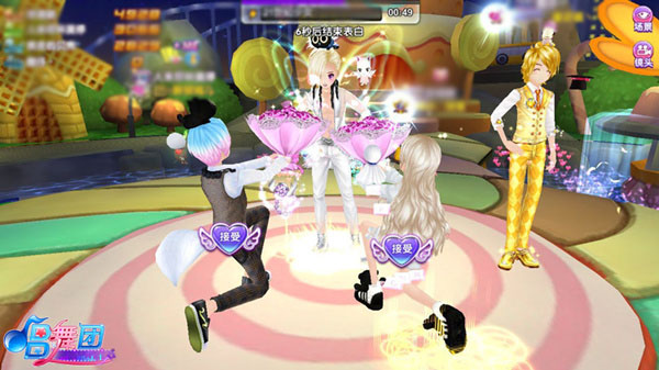第三阶段配对:根据表白阶段的选择,表白人会像心仪的Ta单膝跪下的递上玫瑰花束哦,同时会出现【接受】按钮,如果你觉得Ta的表白打动了你,选择接受就可以配对成功咯!