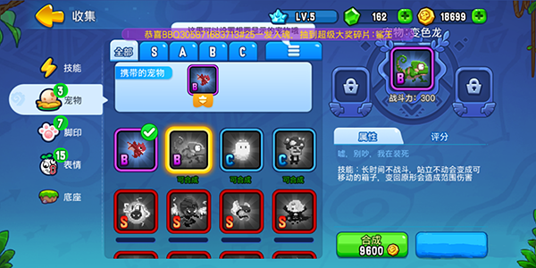 技能和宠物直接决定着英雄的战斗力,分为c~s级,通常越稀有的技能、宠物其碎片的获取难度越大。在集齐碎片后,玩家还需要消耗一定的金币进行合成。