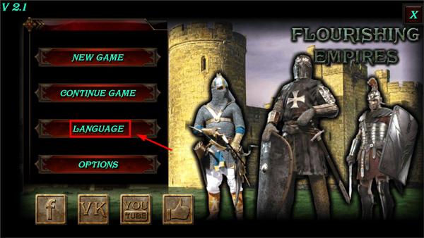 1、玩家打开兴盛帝国游戏,进入游戏菜单页面,在左侧找到language(语言)栏;