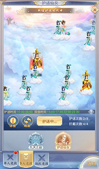 另外每天16:00-17:30和22:00-23:30是双倍护送时间,该时间内护送仙女完成后可获得双倍奖励。