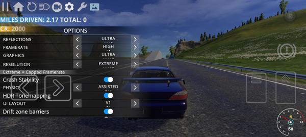 - 逼真的高级漂移动力学,具有逼真的惯性和摩擦力。专为模拟真实漂移物理而设计,需要仔细的反向转向和油门控制。需要技巧,但它是一个详细且令人信服的物理模型,一旦您学会,就会非常有意义和乐趣
