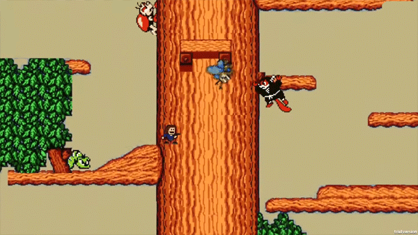 10、下面就是一个树,里面会有机关,各种小虫子和动物,如果不小心掉落到树底下就会被毛毛虫吃掉。