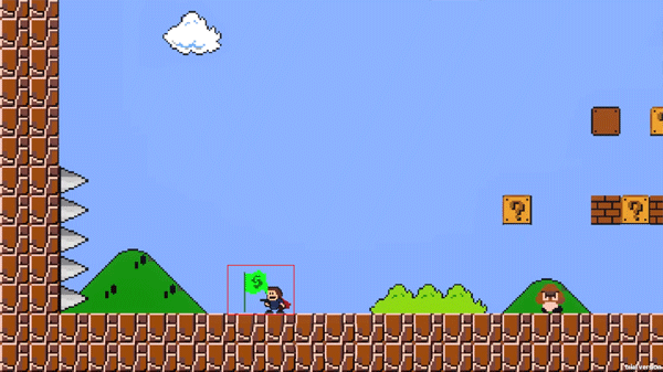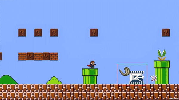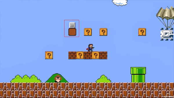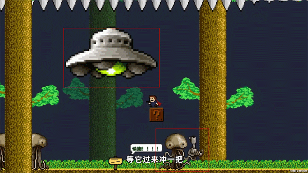 4、这个场景跟马里奥玩法类似,通过头顶上方带有问号的小箱子获得白色方块中的各个技能。