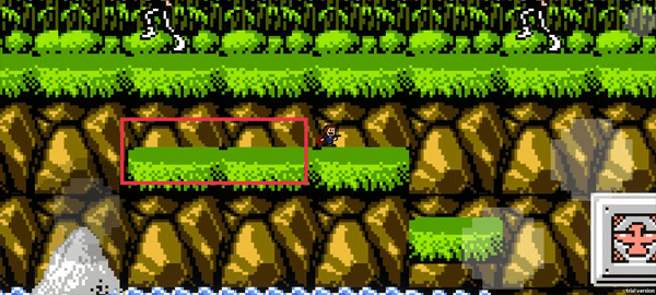 3、从底下跳跃到上面后,从红色框框选中的地方跳下去进入第二个场景。