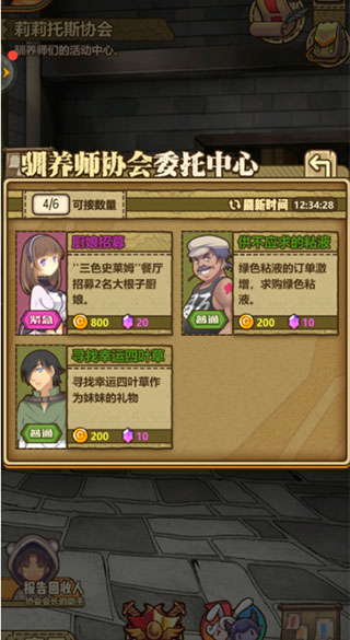 玩家朋友们注意了,重点来了。牧羊人之心里的委托任务是我认为的宝石的主要来源,没有之一(除非你氪金)。委托任务在城镇界面里的协会里领取,就在协会的右下角,接取任务之后就要注意有的任务是要先和剧情人物对话后才能做的,切记看清楚了。