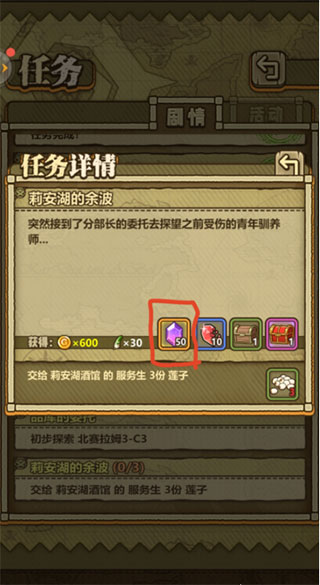委托任务一天只能完成6个,所以记得要选择宝石奖励较高的任务完成,任务完成后(有的是要和剧情人物对话后才算完成,比如一些缴纳物品的)就可以在任务栏里看到已完成的委托任务,点击领取后就可以获得宝石。