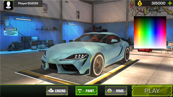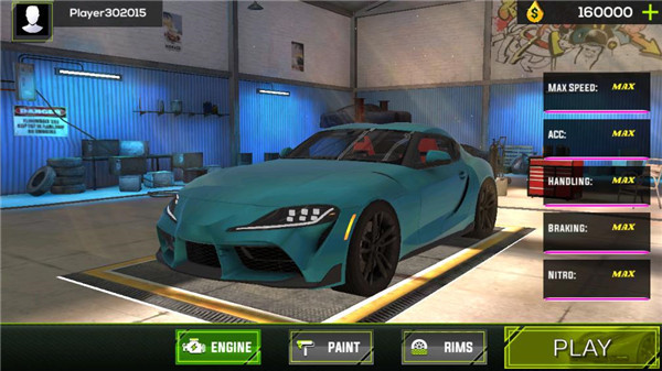 2、玩家进入后点击paint就能够更改车身颜色等装备自己的赛车,然后点击“play”开始游戏。