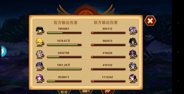 这个阵容主要输出在螃蟹,依次是冰河,那么为何选紫龙而不是牛,牛控制不是更好吗?首先牛出现几率不高,伤害也不够,紫龙伤害不高但觉醒技打3前排还降低韧性能为螃蟹输出创造良好条件(下面2张图片紫龙,螃蟹打出的伤害)