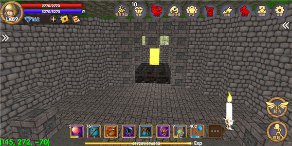 玩家进入游戏的时候可以先创建一个创造模式的世界,进入新建造的世界之后大家可以看到一个小房子,那是游戏中的固定出生点。玩过一段时间的玩家都知道游戏中有一个天空城,大多数人只有到后期等级较高才有能力去往天空城打怪。创造模式中玩家不需要考虑自己的等级直接点击起飞就行,大家可以运用这个模式了解到天空城。