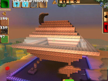 游戏的左下角有一个坐标指示,最后一个坐标接近200的时候玩家就到天空城了。天空城上有很多稀奇古怪的东西,白天只会出现小动物,到了晚上各种各样的大怪物就出现了。不过这种情况多出现在普通模式里,创造模式中玩家基本上很难遇到怪物,因为在这个模式中玩家是等同于上帝的存在。