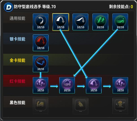优先加满上述《红卡前置技能》。其他技能优先加高《第四排红卡解锁技能》,其余的后续有多余金币就全部加满