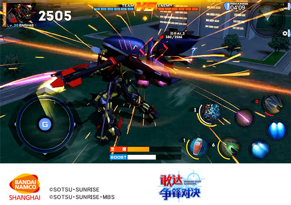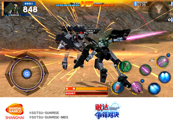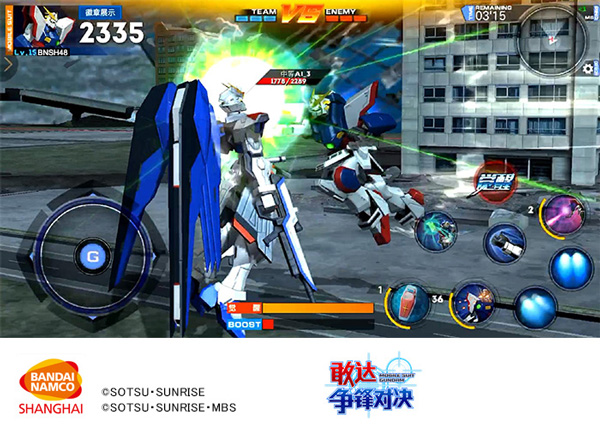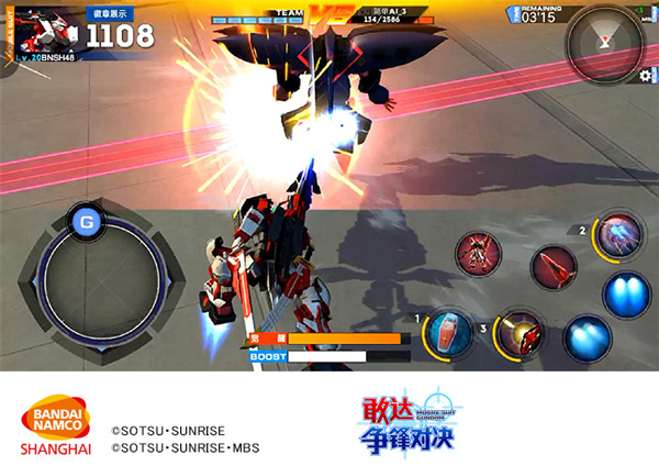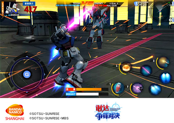 在敢达争锋对决之中,使用格斗武器来攻击对手,也是能够形成巨大伤害的手段。通过按压屏幕上的虚拟按键「普通格斗键」,可令机体施展出专属的格斗攻击动作。根据机体的不同,搭配方向键「左or右」或者「喷射键」,更有「横向格斗」、「冲刺格斗」等丰富的格斗招数。