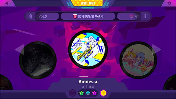 2、难度适中。各难度级别过渡平缓,作为一个音游小白,我觉得非常容易入手,并且能从这种平缓的难度提升感觉到了自己的成长。