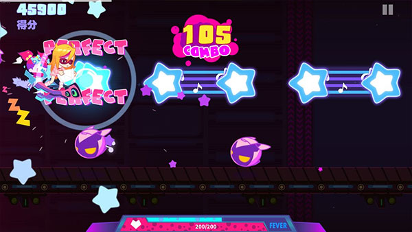 游戏中玩家需要控制三名不同的小姐姐来进行挑战,你可以按照每一个音符的要求来进行操作,根据音乐的节拍来完成不同的动作,只有这样你才可以越过前方的障碍,只要你成功完成一首歌曲,就可以成功通关,然后挑战下一关卡。同时,该游戏一共有着两百多首版权歌曲和众多联名歌曲以及独家歌曲,这些歌曲不但节奏感十足,非常好听,每首歌曲都有着它的专属关卡供各位玩家进行挑战。