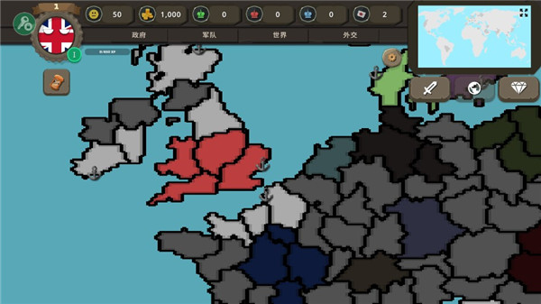 要使用外交,请单击领土并单击带有箭头的按钮。每个外交行动将消耗 1个外交点。