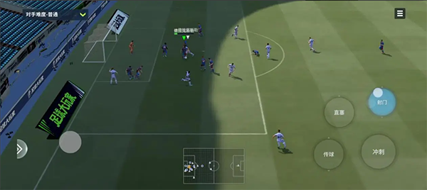 2、推射:在需要精确射门时,向下划动射门键即可推射。