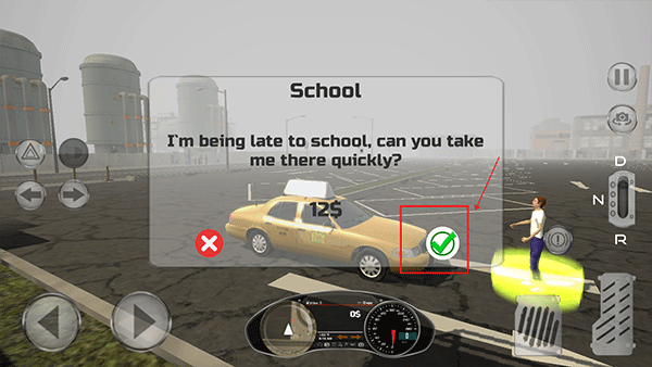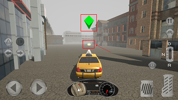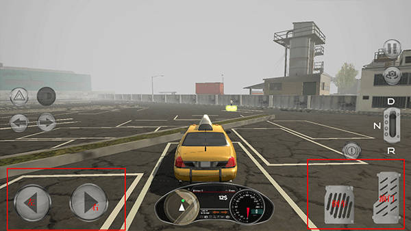 2、进入开放世界出租车模拟器手机游戏后,使用左边左右按键操控车辆的方向,右边分别为倒车和油门