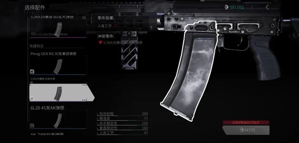 点进去之后就会出现像图片一样的画面,它是要让玩家选择安装哪一款弹夹,然后点击相对应的弹夹,然后购买就可以把弹夹给安装上去了。因为大部分的弹夹都是需要升级等级才能够买的,所以新手玩家可以先用普通的弹夹凑合一下,等待玩家的等级够了再购买,玩家也不用担心会浪费,到后面是可以卖的。