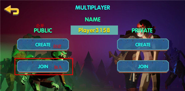6、在公共房间和私人房间选择创建房间或者加入房间;