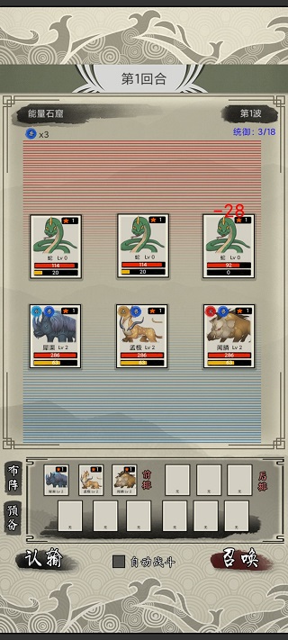 第三波开始用20搜索蛇属性的异兽,十点统帅3322,6选4