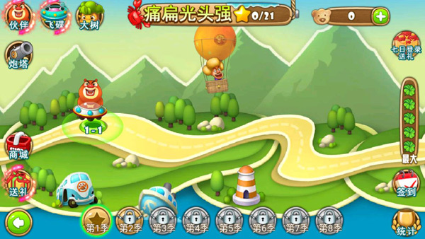 熊出没相信大家都有看过吧,憨憨的熊大和熊二,还有砍树的光头强,自从这部动画推出一直都深受很有朋友的喜爱。今天小编给大家带来的是熊出没之保卫家园手游,这是根据动画片熊出没改编的策略类塔防游戏,画面清新,角色萌化,连大反派都是那么萌。在游戏中玩家将为熊大熊二穿上超萌装扮,乘坐强力飞碟,使用特色技能,与光头强斗智斗勇,抵挡光头强一波一波的进攻。