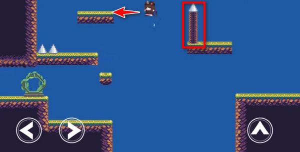 2、注意,第一个陷阱要出现了,我们快速跳上去触发陷阱,然后立马回到安全的小台阶上