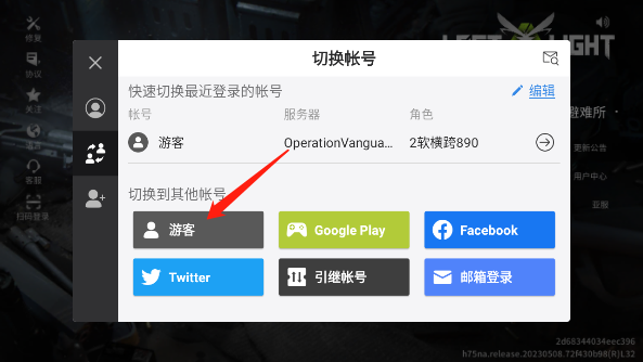 2、然后点击游客快速登录,或者切换最近登录的账号。