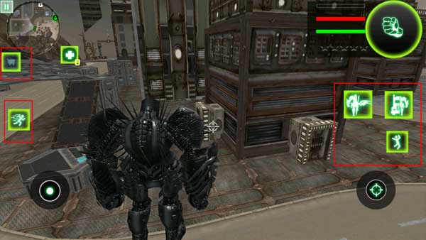 2、左边是商店、加速、治疗按钮,而右边则是机械飞龙、汽车以及跺脚三个功能选项。