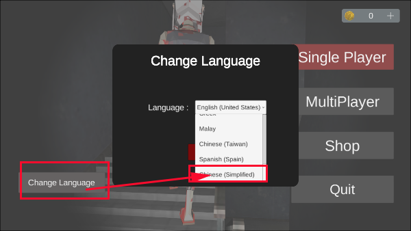 1、初次进入asylum77游戏后,我们点击“language”选择其中的中文,游戏目前推荐有繁体与简体俩种模式,下图所示即为简体中文选项