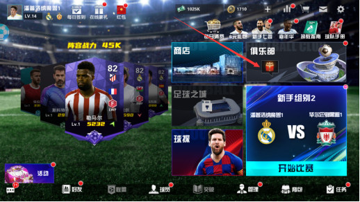 在主界面我们可以看到有一个俱乐部的小板块,里面也有着许多的物资领取方式。