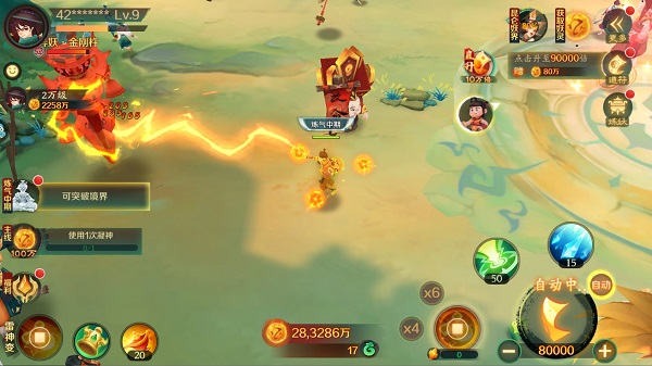 2、攻击有几率触发致命一击,触发后怪物立即被击败,并且获得妖灵奖励。怪物倍数越高,妖灵奖励越多,但是也越难触发致命一击。