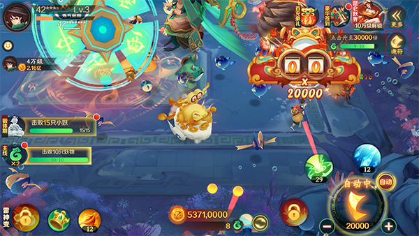 3、竞技与休闲并存:游戏既支持单人捕鱼,也支持多人联网同台竞技,玩家可以自由选择竞技或休闲模式,满足不同需求。