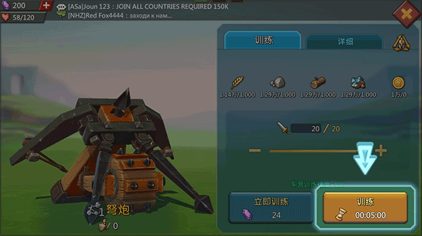 1、下载安装好王国纪元官方版,打开游戏,点击军营训练士兵,建立起强大的兵团。
