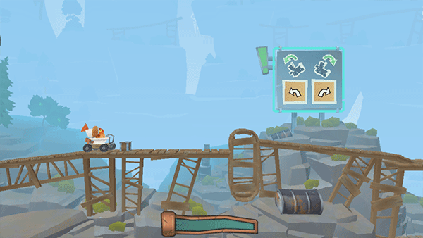 玩家需要躲开或者借助路上的障碍达到终点,每个关卡之间都会有多个存档点,这样你就不用从头再来。和很多动作游戏不同的是,这只鸡的生命力极强,当你的车子坏掉之后,它仍可以踩着轮子继续滑行;轮子丢了,也可以步行跳跃,哪怕是身上着火都可以变成全家桶继续踩着轮子闯关;即便是没有任何道具受伤之后,还可以变成鸡腿,而且这时候仍然可以开车、踩轮子。