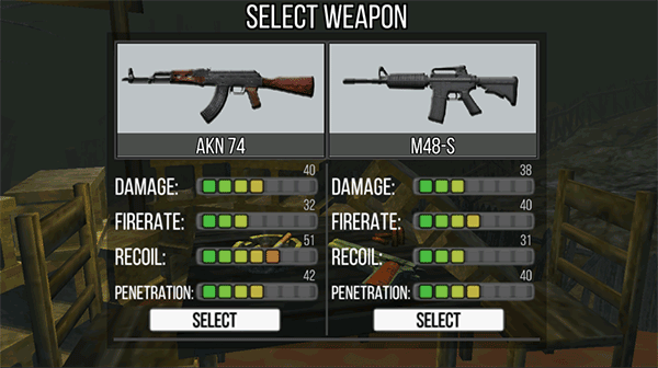 1、打开游戏会让你选好枪,只有AK和M4选择,手残玩家或者小白玩家可以选择M4,高手就用AK吧;